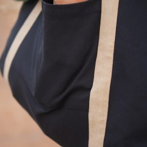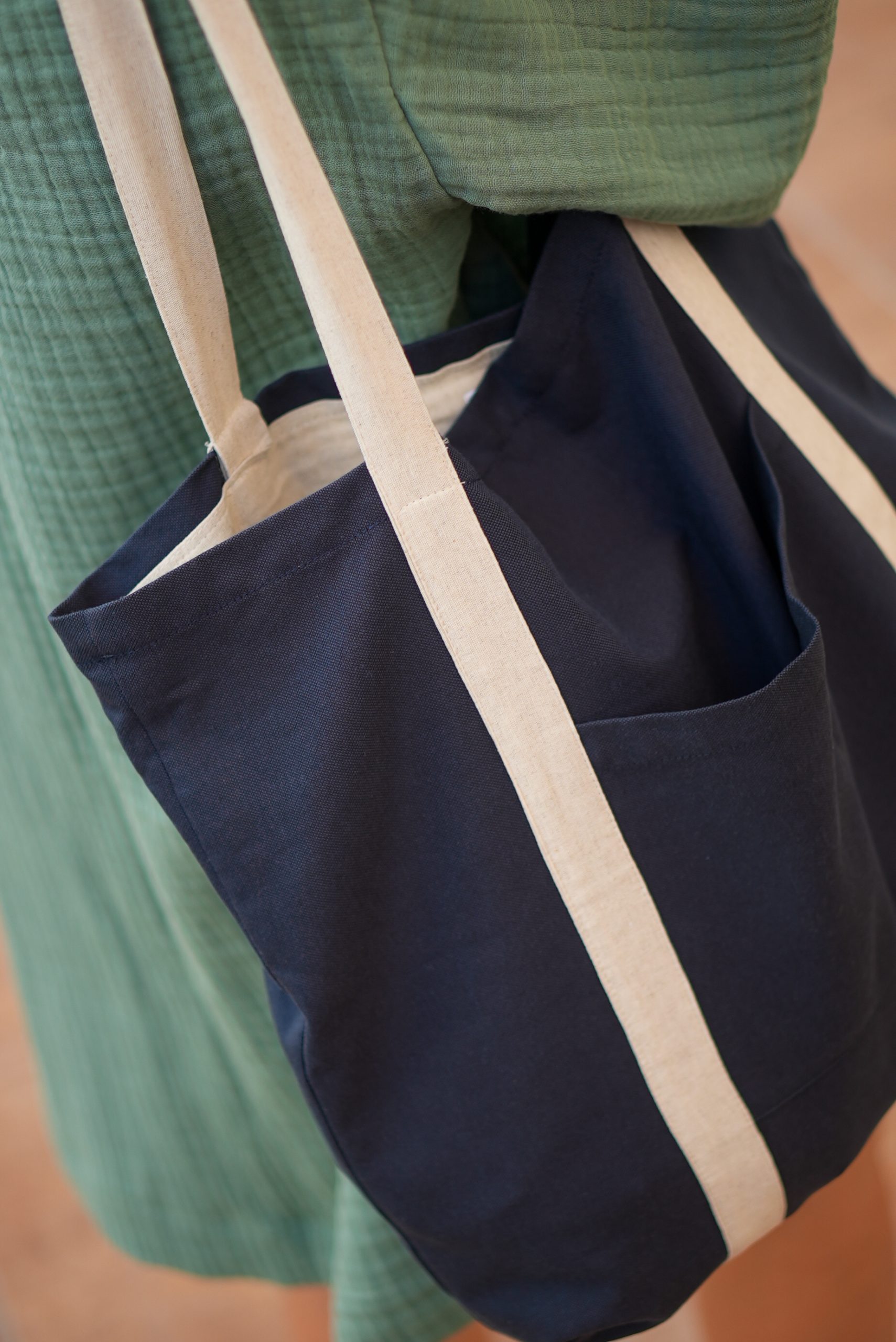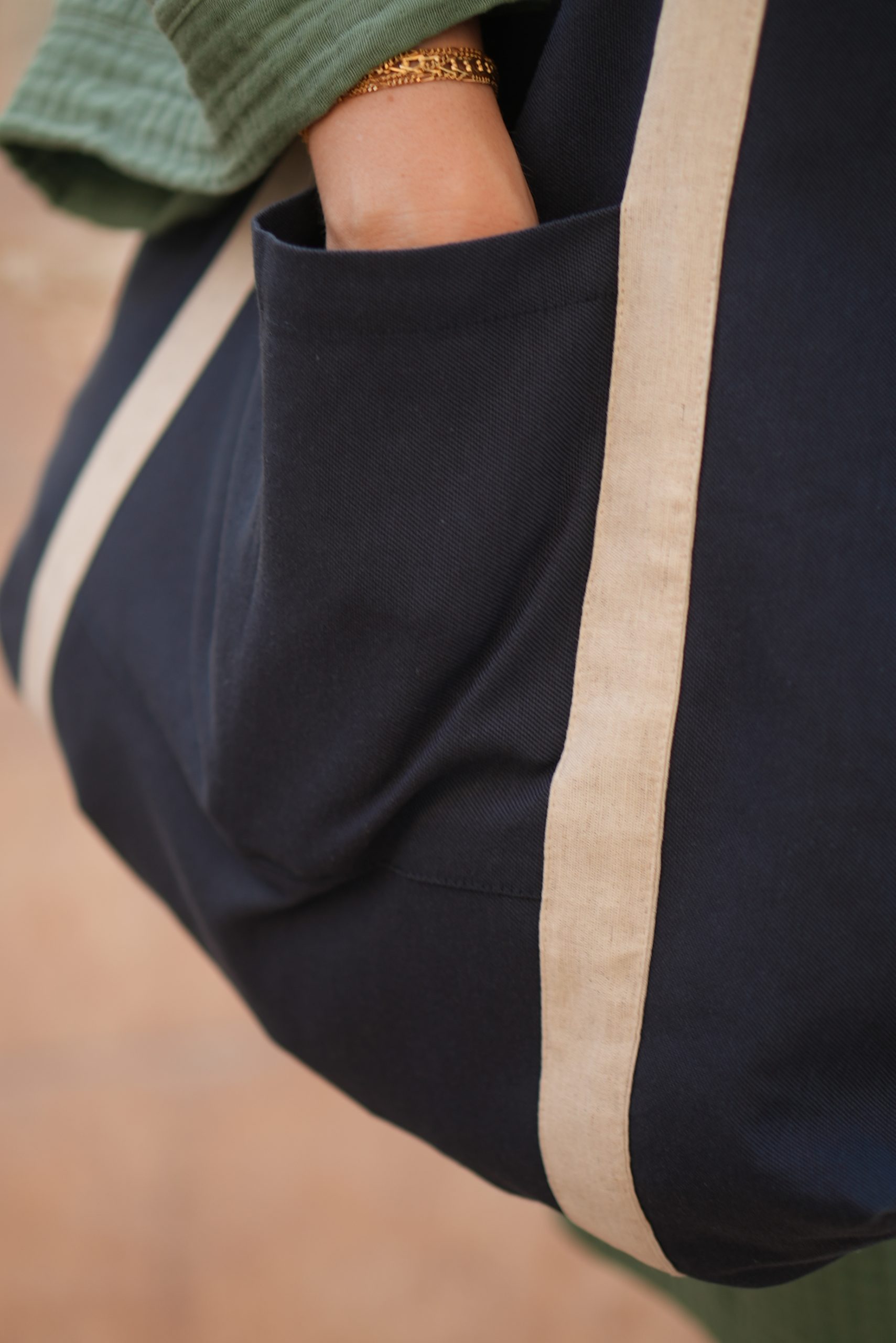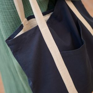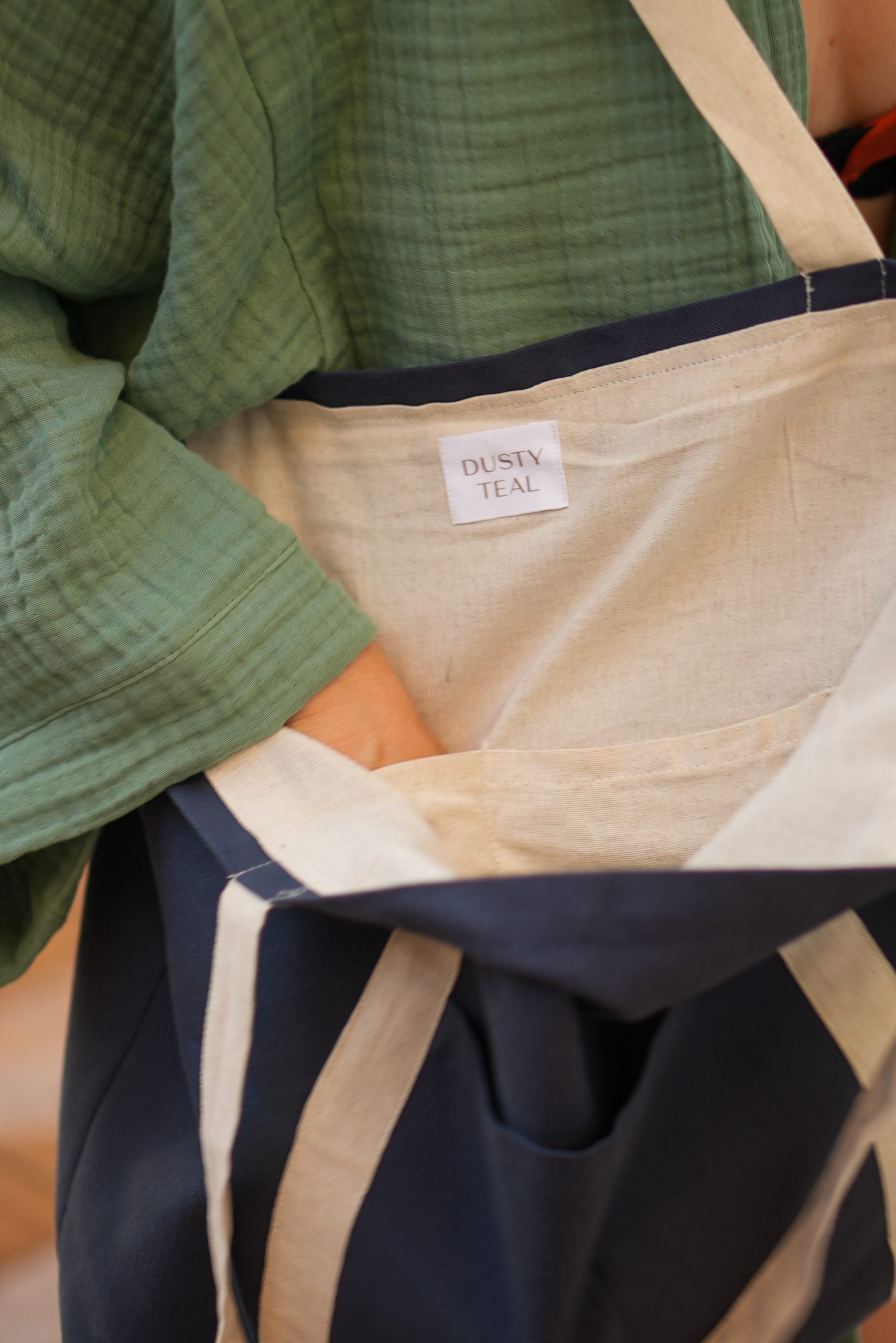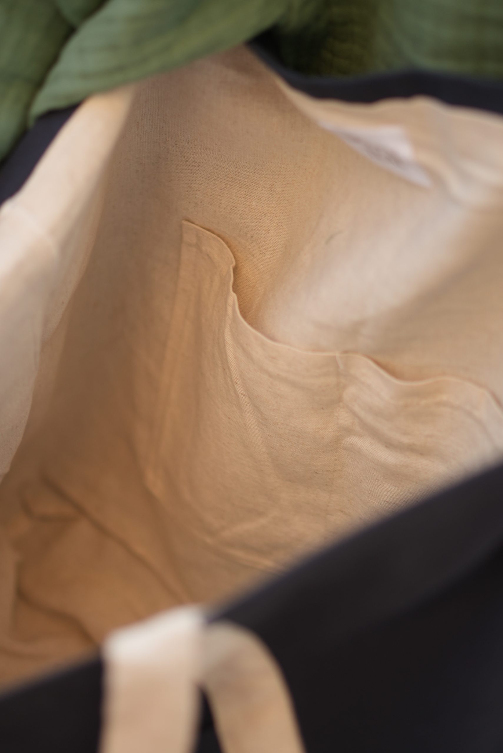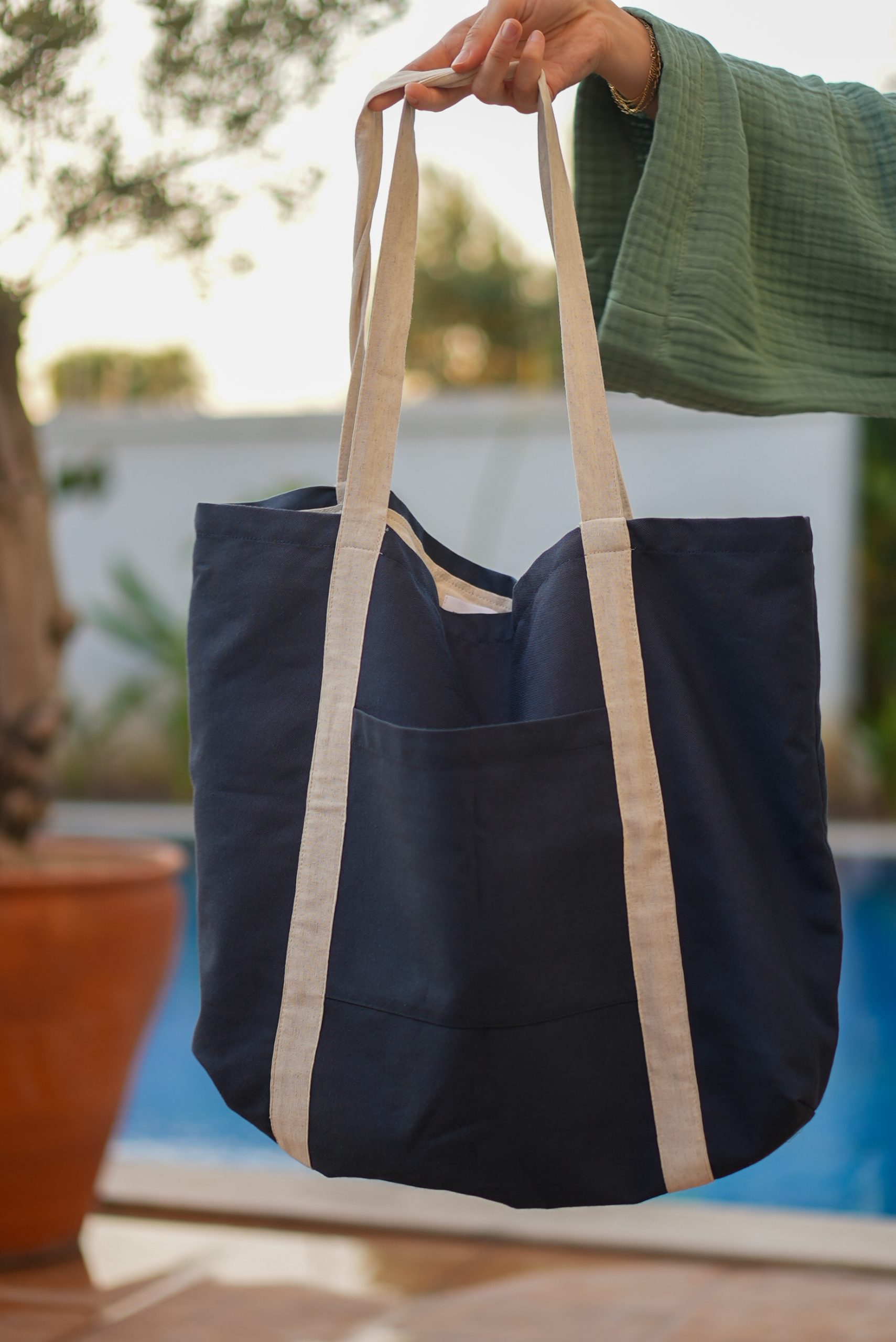 Water-repellent exterior, cotton linen lining, spacious 50×40 cm design with an internal pocket, and comfortable 30 cm straps – perfect for your beach essentials.