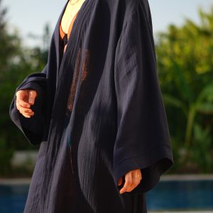 The perfect blend of modern elegance and comfort, the short muslin kimono adds a touch of sophistication to your wardrobe. Made from natural bamboo-cotton 2 layers muslin fabric, it offers breathable and lightweight wear, ideal for all seasons. Its soft texture and skin-friendly properties make it both stylish and comfortable. Additionally, the sustainable and eco-friendly nature of muslin fabric shows your respect for the environment.